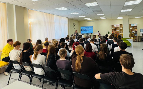 Участниками мероприятия стали учащиеся школ города Карасука, представители Движения Первых Карасукского муниципального округа, более шестидесяти человек. Ребята внимательно слушали рассказ библиотекаря о жизни и творчестве Таисьи Ефимовны, оставившей заметный след в сибирской, да и в целом – в российской литературе. Участниками мероприятия стали учащиеся школ города Карасука, представители Движения Первых Карасукского муниципального округа, более шестидесяти человек. Ребята внимательно слушали рассказ библиотекаря о жизни и творчестве Таисьи Ефимовны, оставившей заметный след в сибирской, да и в целом – в российской литературе. Кроме информации о самой сказительнице, ребята узнали о виртуальной экскурсии, разработанной в рамках проекта «Ценностные маяки». Основными элементами этой экскурсии являются такие отдельные блоки: «Почитать», «Посмотреть», «Поиграть», «Полистать» и «Послушать». В них можно найти, к примеру, произведения Таисьи Ефимовны, фотографии из её личного архива, видеоинтервью, аудиосказы, викторины и многое другое. Ещё одной важной частью презентации стал рассказ о конкурсе «Корни и крылья», в котором могут принять участие ребята от 14 до 23 лет. На конкурс принимаются письменные работы, в которых описаны поступки, ситуации нравственного выбора, когда люди поступают, руководствуясь традиционными ценностями, как и герои произведений Таисьи Пьянковой.